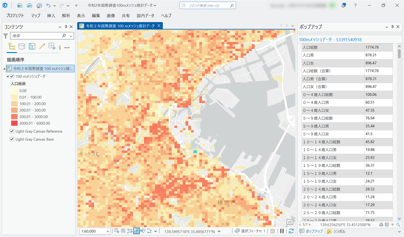 国勢調査の100mメッシュ推計データ(株式会社ゼンリンマーケティングソリューションズ)です。