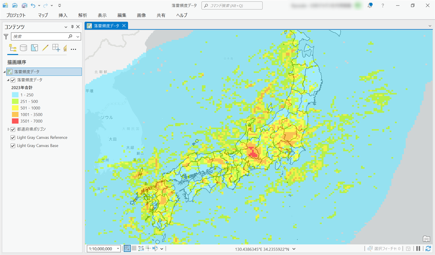 本データによって、落雷の発生数の多い地域が判明し、大規模建物・土木施設等を建築する際の候補地の選定や事前調査、落雷リスクの判定などのデータにご利用いただけます。
