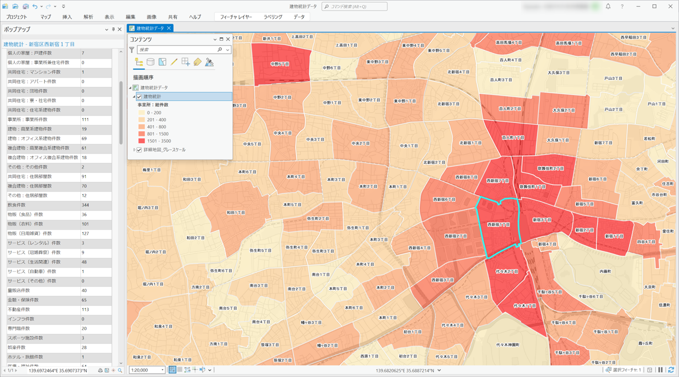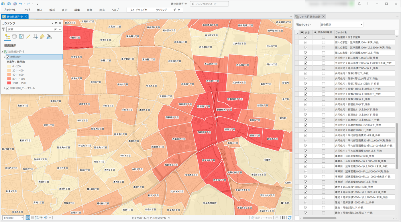 建物統計データは、住宅や商業ビル、オフィスビルなど全国約3,700万棟の建物を、行政界ごとに、建物種別、事業所種別、階数、面積などで集計・統計化したデータです。ゼンリン住宅地図をベースとした建物一軒一軒の情報を統計化しているため、実状に近いより精密な分析が可能です。