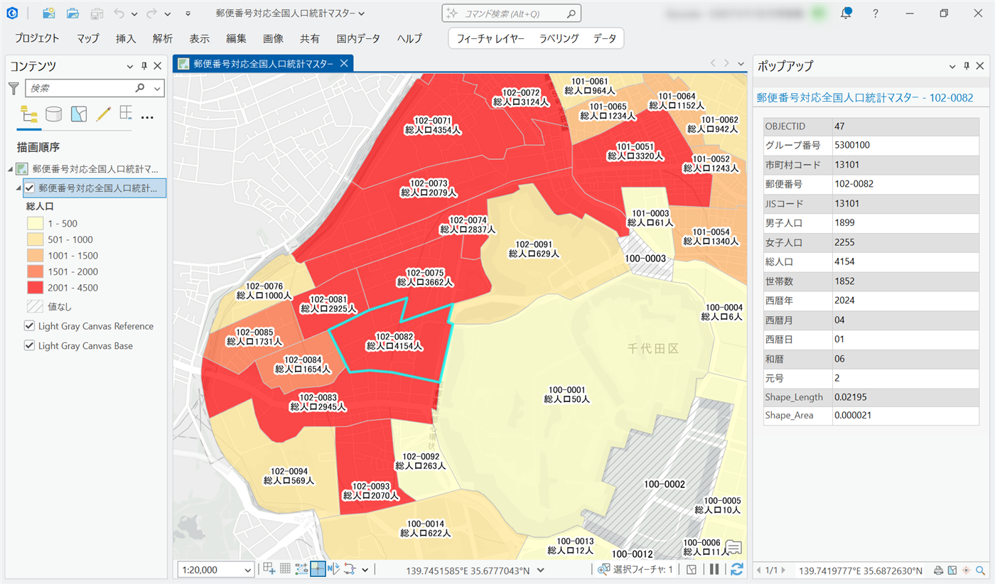 「郵便番号対応全国人口統計マスター」は、公益財団法人国土地理協会が作成した「郵便番号単位で人口・世帯数を集計した統計データ」です。本データは、住民基本台帳をもとに作成した毎年4月1日現在の町丁目別の男女人口と世帯数を収録した全国人口統計マスターをベースに、郵便番号単位に男女人口と世帯数を再集計したデータです。郵便番号単位でエリア分析を行う場合に最適なデータベースです。国際航業株式会社製の PAREA-Zip に対応しており、お得なセット販売もあります。