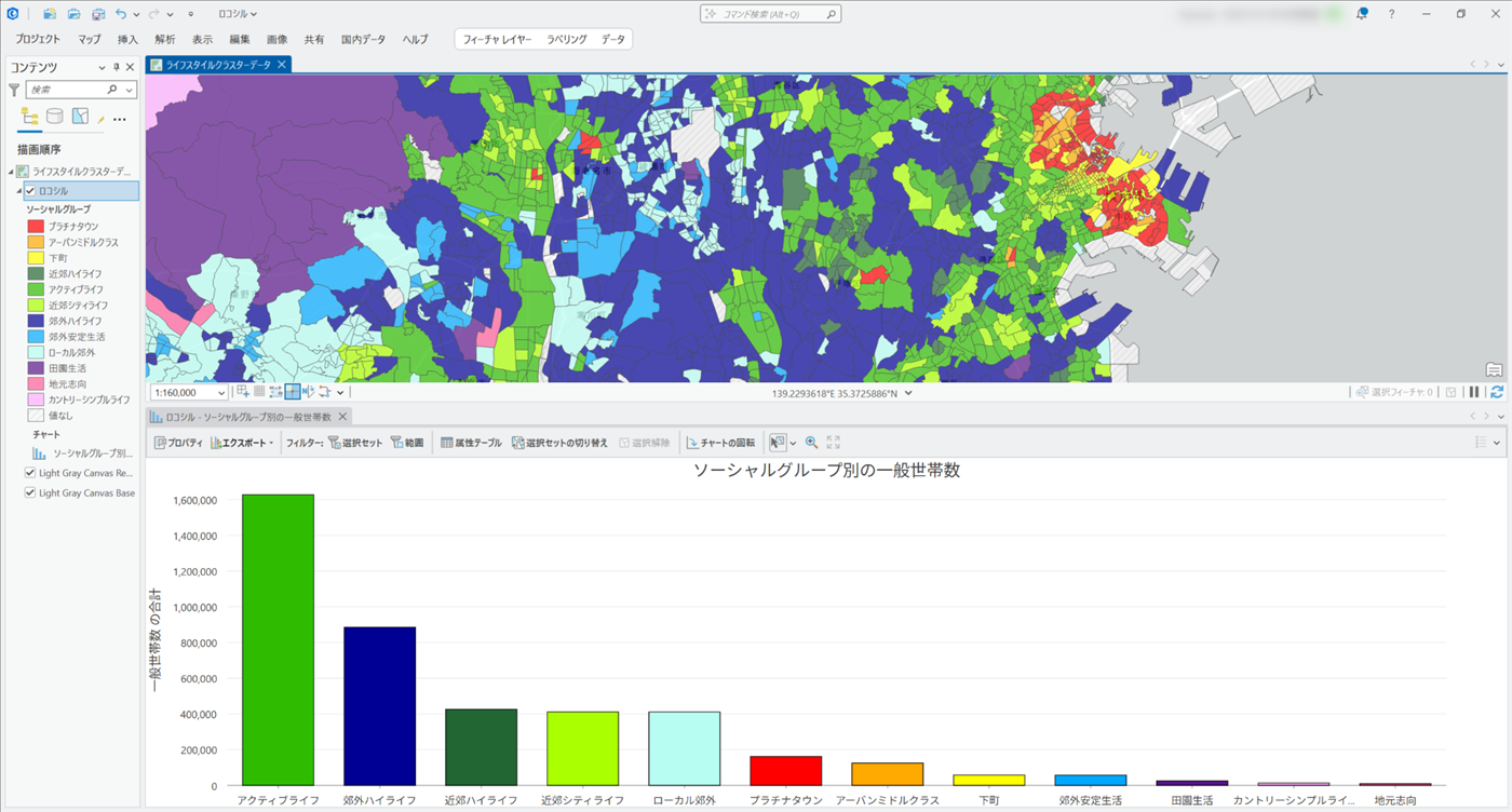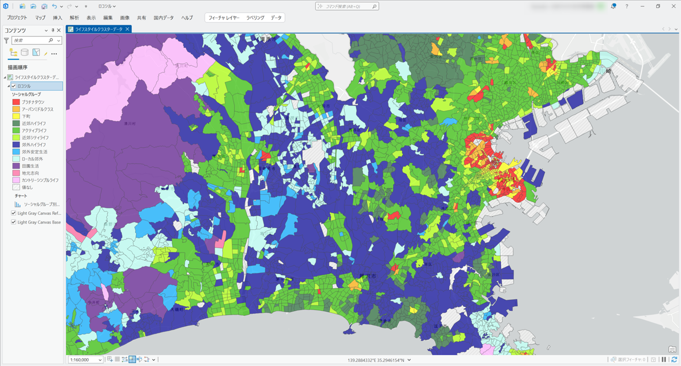 国勢調査をベースに各種統計データを用いて、クラスタリング理論に基づき日本全国の町丁目を地域特性の観点から4つの大分類、12種のソーシャルグループ・43種類のクラスターに分類したジオデモグラフィックデータです。