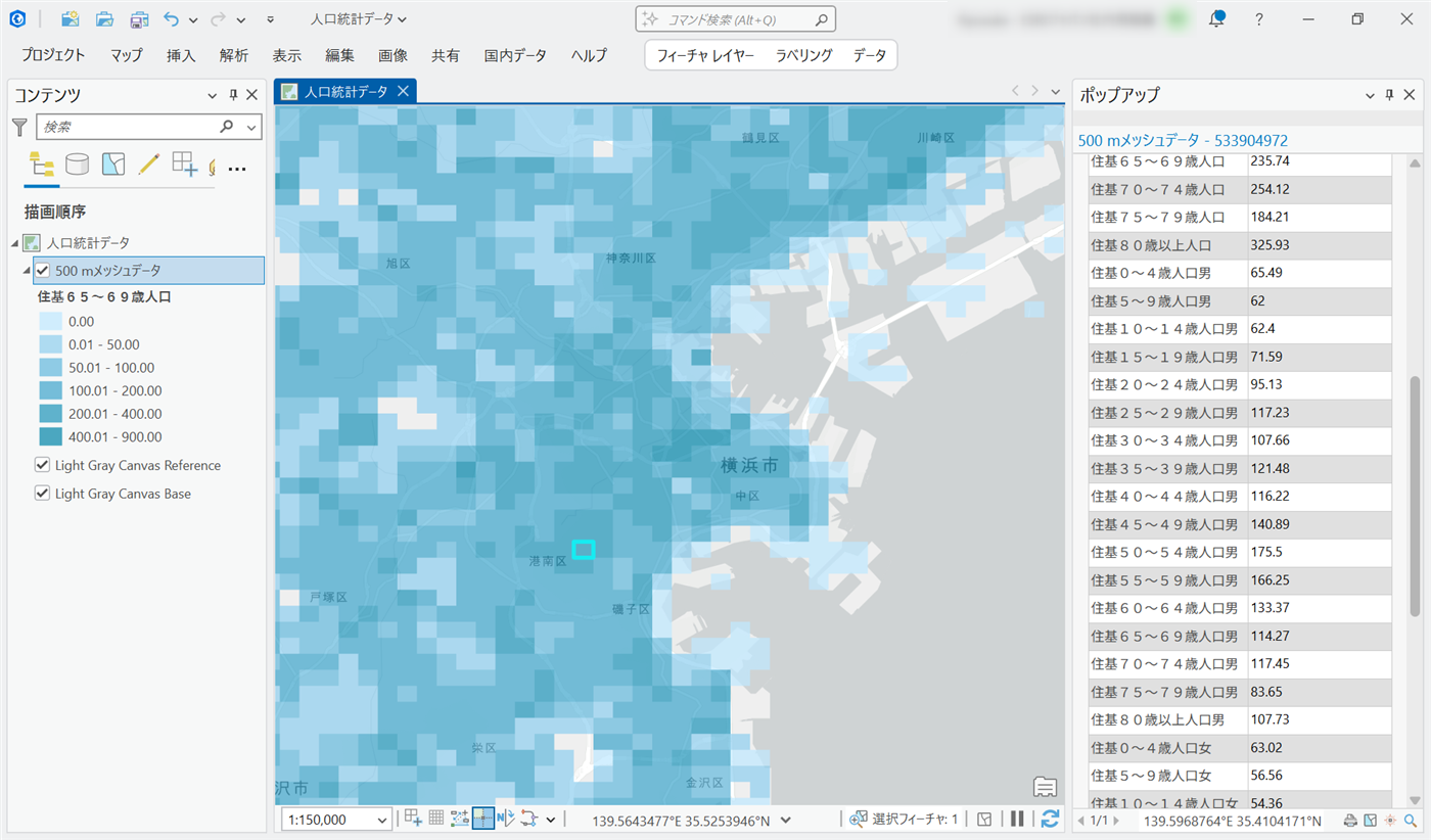 「住民基本台帳」をもとに日本加除出版株式会社が収集、整備した人口・世帯数データを、住宅地図(ゼンリン)の住宅数を用いて地域メッシュに推計したデータです。