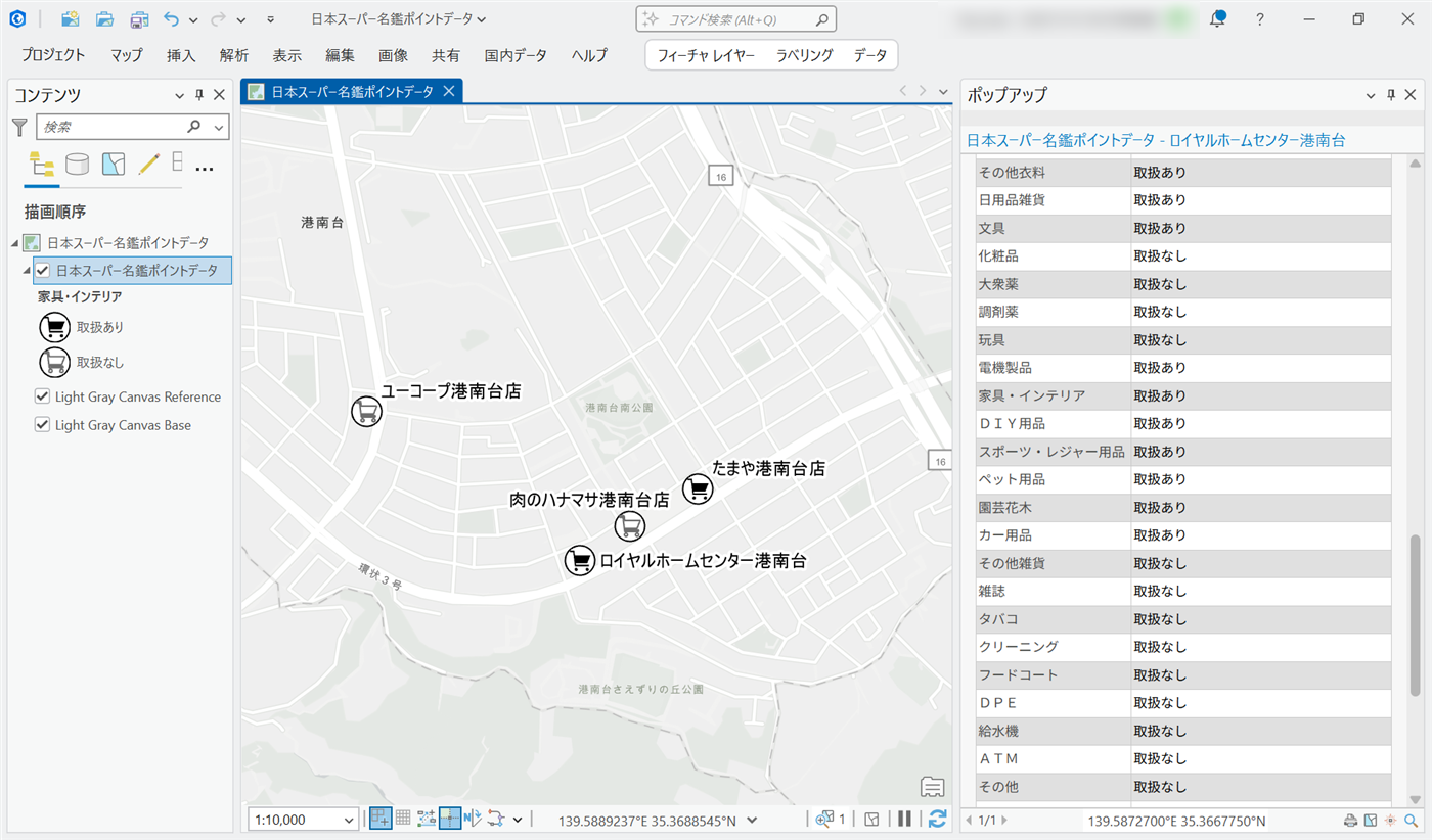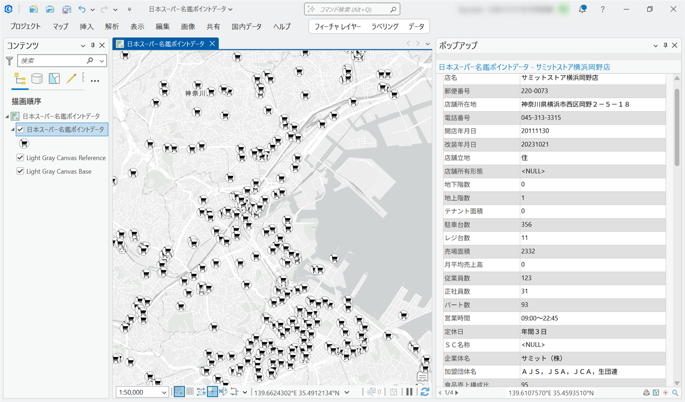 「株式会社食品速報」発行の「日本スーパー名鑑」を地図上にプロットしたポイントデータ。