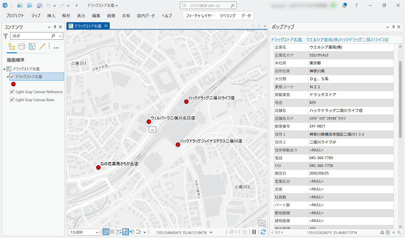 | 特徴 | 「ドラッグストア名鑑」収録の店舗データに株式会社ゼンリンマーケティングソリューションズが座標を付加することによってGIS上で利用できるようになった業界唯一のポイントデータベース |