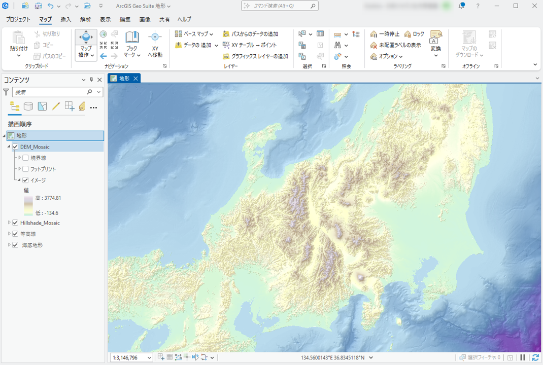 基盤地図情報 数値標高モデル(国土交通省国土地理院)を用いて全国シームレスに整備された標高データベースです。5 m(一部地域を除く)および 10 m メッシュ数値標高モデル(DEM)から作成した地形データ(ラスター)のほ … "ArcGIS Geo Suite:地形" の続きを読む